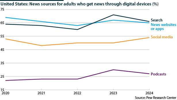Yet, the biggest problem news publishers face may be trust in their products. One in four US adults opposes compensating publishers for AI firms using their content for training. This surprisingly high figure may stem from growing public distrust of mainstream media that has been fuelled by conservative populists in recent years. This antipathy will become more intense if and when President-elect Donald Trump follows through on campaign threats of legal action against the news media.