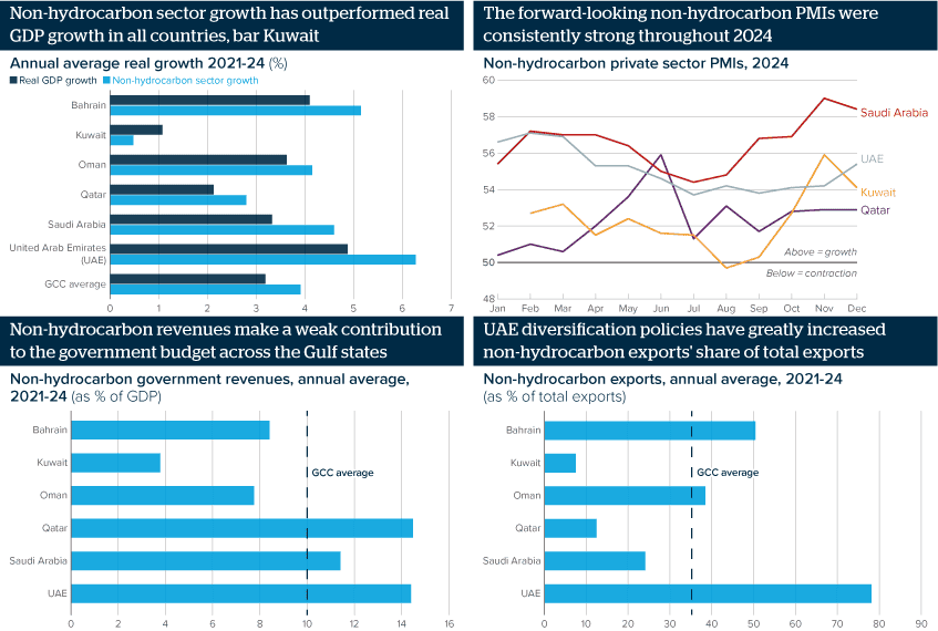 Government polices in the Gulf states will support the growth of the non-hydrocarbon private sector into the medium term