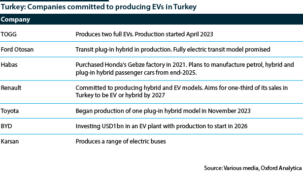 Outwardly Ankara is committed to the transition to EVs, but its main aim is to protect the domestic vehicle manufacturing sector by urging existing manufacturers to produce EV models in Turkey and encouraging others to establish manufacturing plant in the country.